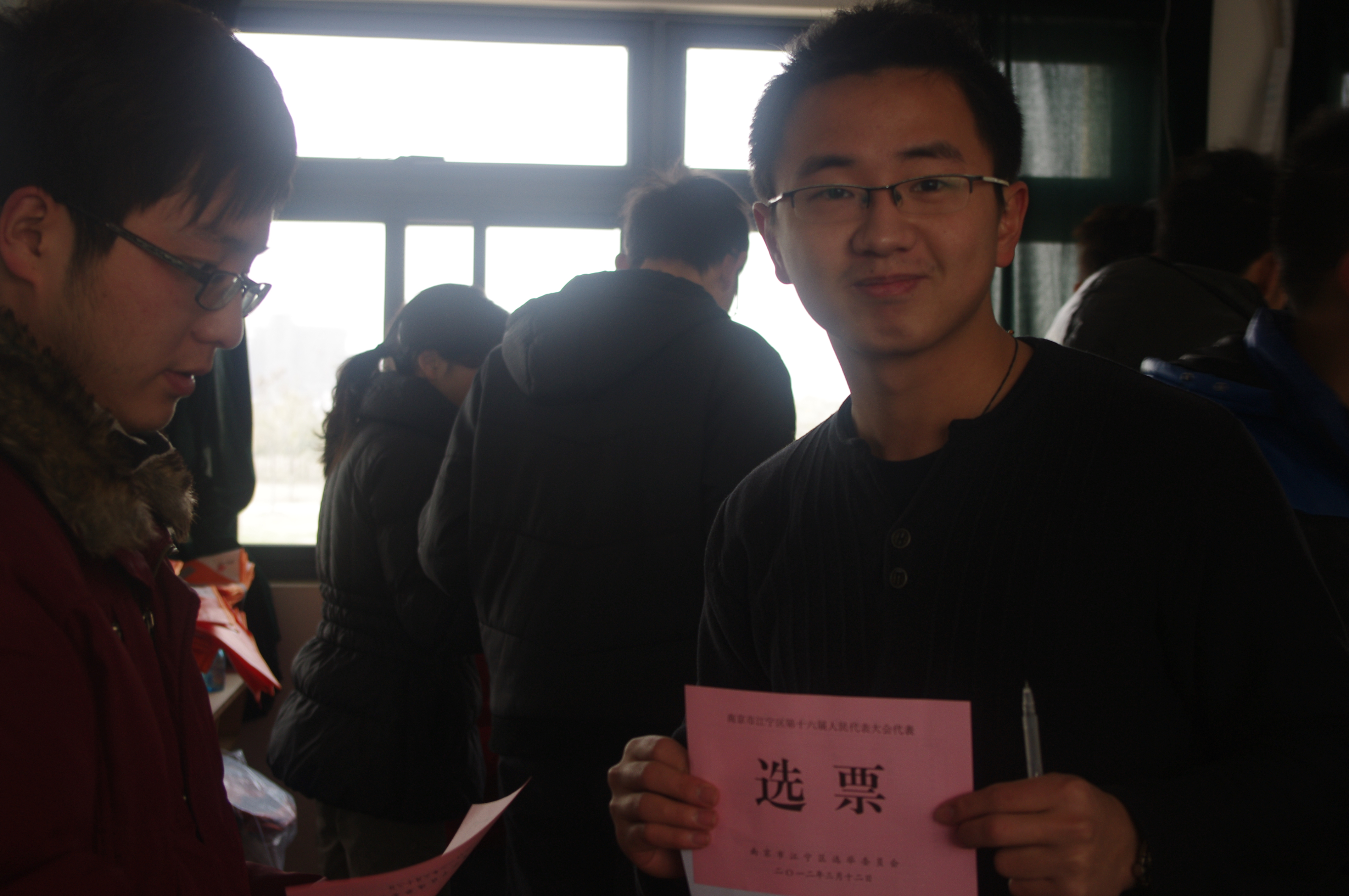 3月12日,江宁区第十六届人大代表选举3522vip浦京集团官网选区正式选举工作在九龙湖校区举行。浦京集团官网投票站设在本院学生工作办公室。浦京集团官网在九龙湖校区学习的一、二、三年级本科同学们热情高涨,他们以选民的身份,行使自己的选举权,从我校两名候选人大代表中依法选举产生他们的代言人。