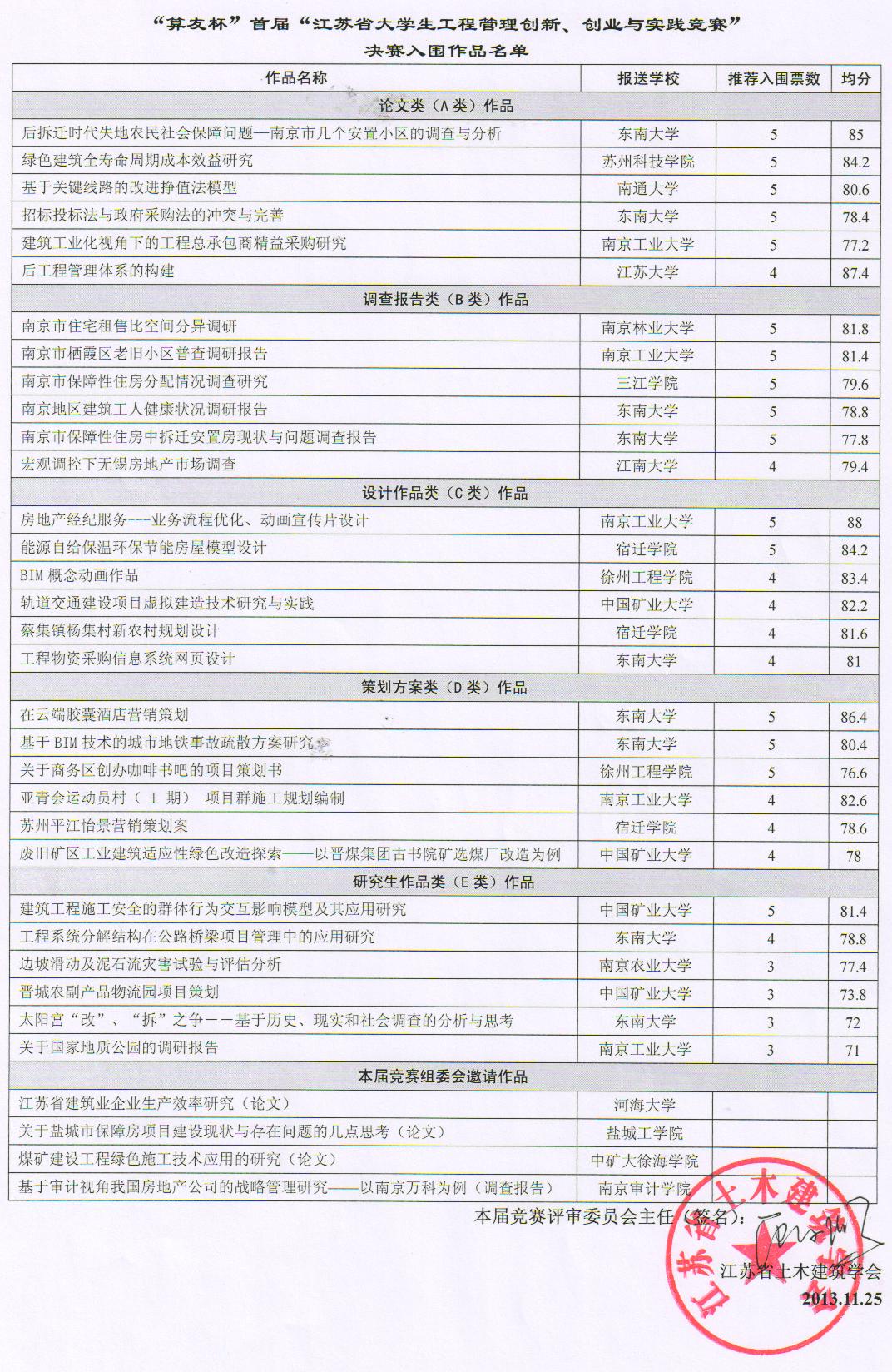 本届竞赛,16所参赛高校共推荐了62件复赛作品。复赛评审专家进行了为期近一个月的电子盲审,按本竞赛《章程》选出了30件作品入围决赛,本届竞赛组委会另邀请了4所高校的4件优秀作品参加决赛阶段比赛(共34件作品,入围决赛作品名单见附件一)。请各参加高校按本竞赛《章程》,组织本校决赛入围作品的进一步修改完善工作及参加决赛的准备工作。有关决赛的若干事项通知如下: