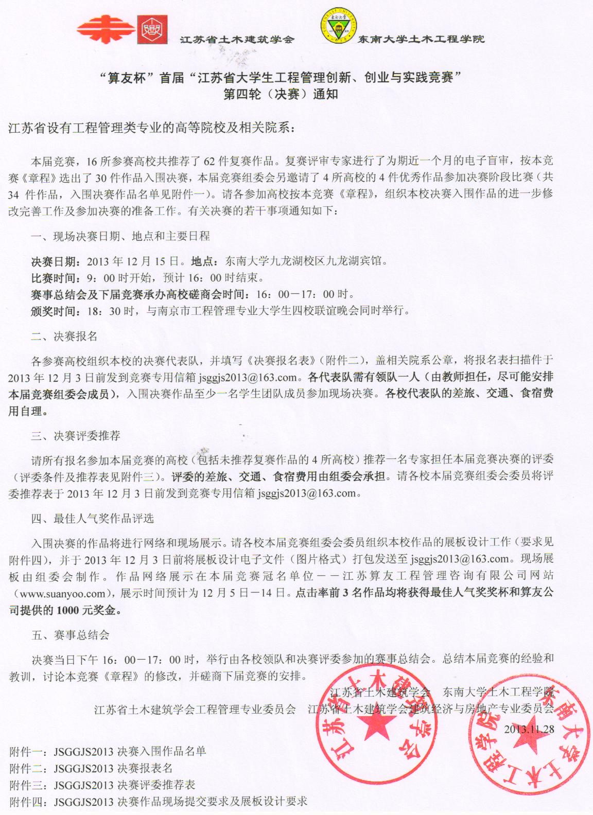 颁奖时间:18:30时,与南京市工程管理专业大学生四校联谊晚会同时举行。