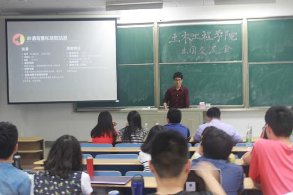 本次交流会涉及的留学地区有美国、加拿大、新加坡、日本、澳大利亚、香港等,比较具有代表性,受到了同学们的广泛关注。虽然春季的雨夜带有丝丝凉意,但分毫不减教室里同学们的热情。主持人王蕊的介绍和致欢迎辞后,交流会正式开始。