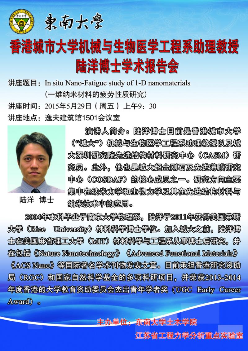 香港城市大学机械与生物医学工程系助理教授陆洋博士学术报告会