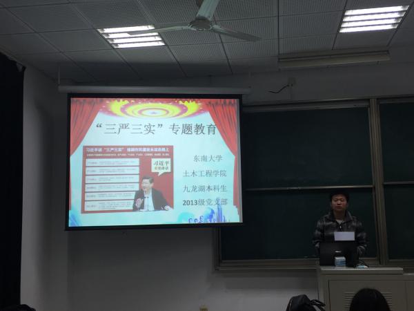 在接下来的集体学习中,支部书记章锦洋同学围绕“严以修身、严以律己、严以用权、谋事要实、创业要实、做人要实”分条解读了习近平总书记的讲话精神,并传达了中组部、教育部关于学习贯彻“三严三实”精神的通知,分享了我校领导班子开展“严以修身”、“严以律己”专题学习研讨时的心得体会,并对支部同学提出了“学理论、联实际、当标兵”三点希望。在座的各位党员和入党积极分子纷纷表示要联系自身实际认真学习领会“三严三实”精神,查找自己存在的“不严不实”问题,坚定政治信仰和政治立场,坚决抵制各种不正之风,当好学生中的标杆和楷模。