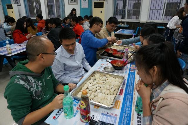 下午16时,在经过二个小时的交流与游戏环节后,大家前往莘园食堂开始下一环节制作自己的晚餐盛宴——包饺子。包饺子环节,南北方的同学们讨论包饺子的方法不同,女生会教男生包饺子,项目组的工作人员也和大家一起包饺子,共进晚餐。虽然只是简单的包饺子环节,但大家都表示,在冬至前,这样一起聊天、包饺子、吃饺子的氛围很好,而且饺子也格外的好吃。