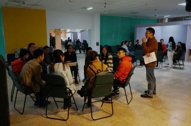 11月7日下午14时,主体活动在兰园活动中心正式开始。主持人介绍完活动内容后,大家通过转椅子游戏进行了随机分组和选择搭档,组内成员简单的自我介绍后,大家便开始了游戏环节。在游戏环节中,大家积极配合也相互竞争,你追我赶,欢快的活动气氛更促进了大家交流的热情。