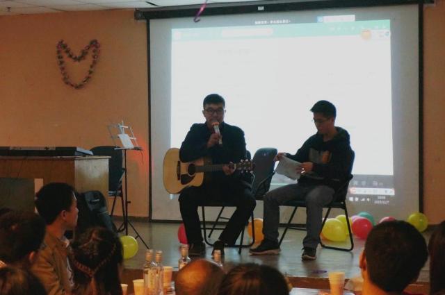 吃完饺子后,大家又回到兰园活动中心,项目组的工作人员为大家准备了丰盛的饭后水果和糖果。在晚上舞会正式开始之前,土木学院研究生会主席孔祥羽代表主办方向前来参加活动的同学表示热烈的欢迎,对兄弟院系研会的支持及活动赞助商表示衷心的感谢。随后,孔老师和文化部小乐队共同为大家带来了吉他弹唱节目。