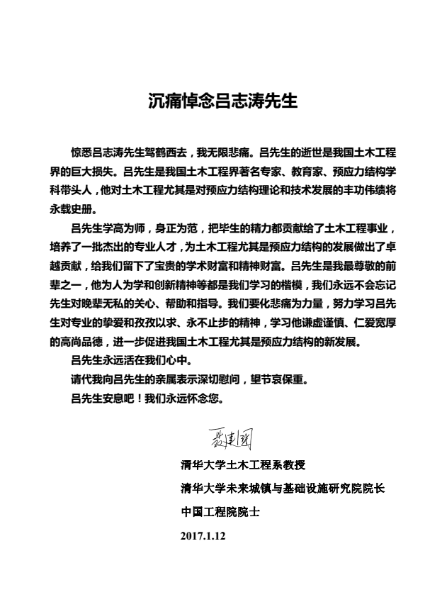 沉痛悼念吕院士 ——清华大学聂建国院士