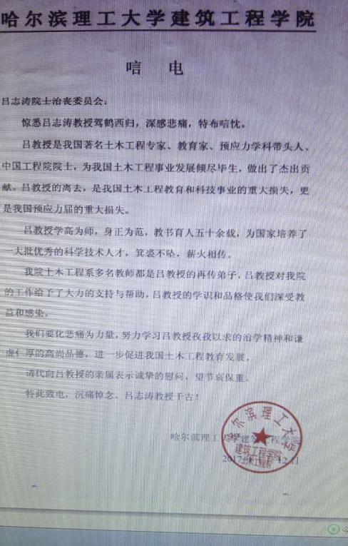 痛悼吕院士 ——哈尔滨理工大学建筑工程学院