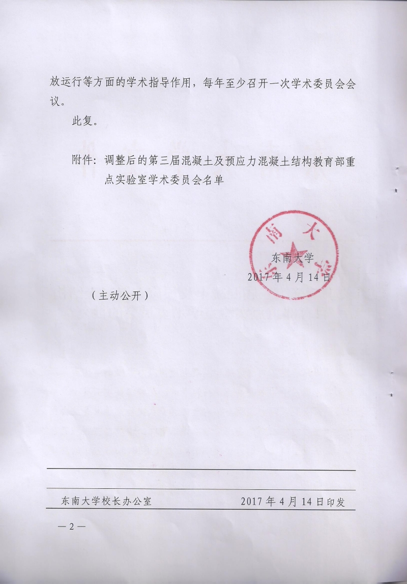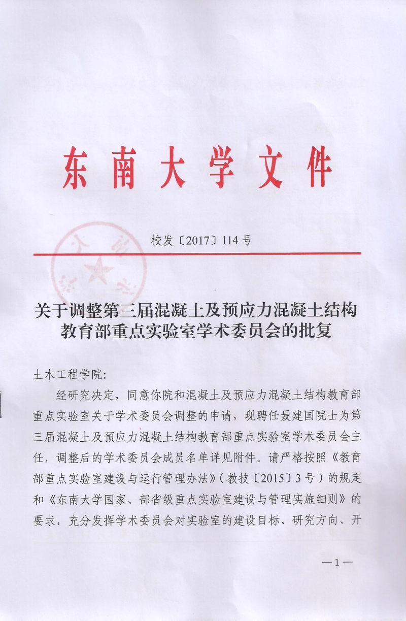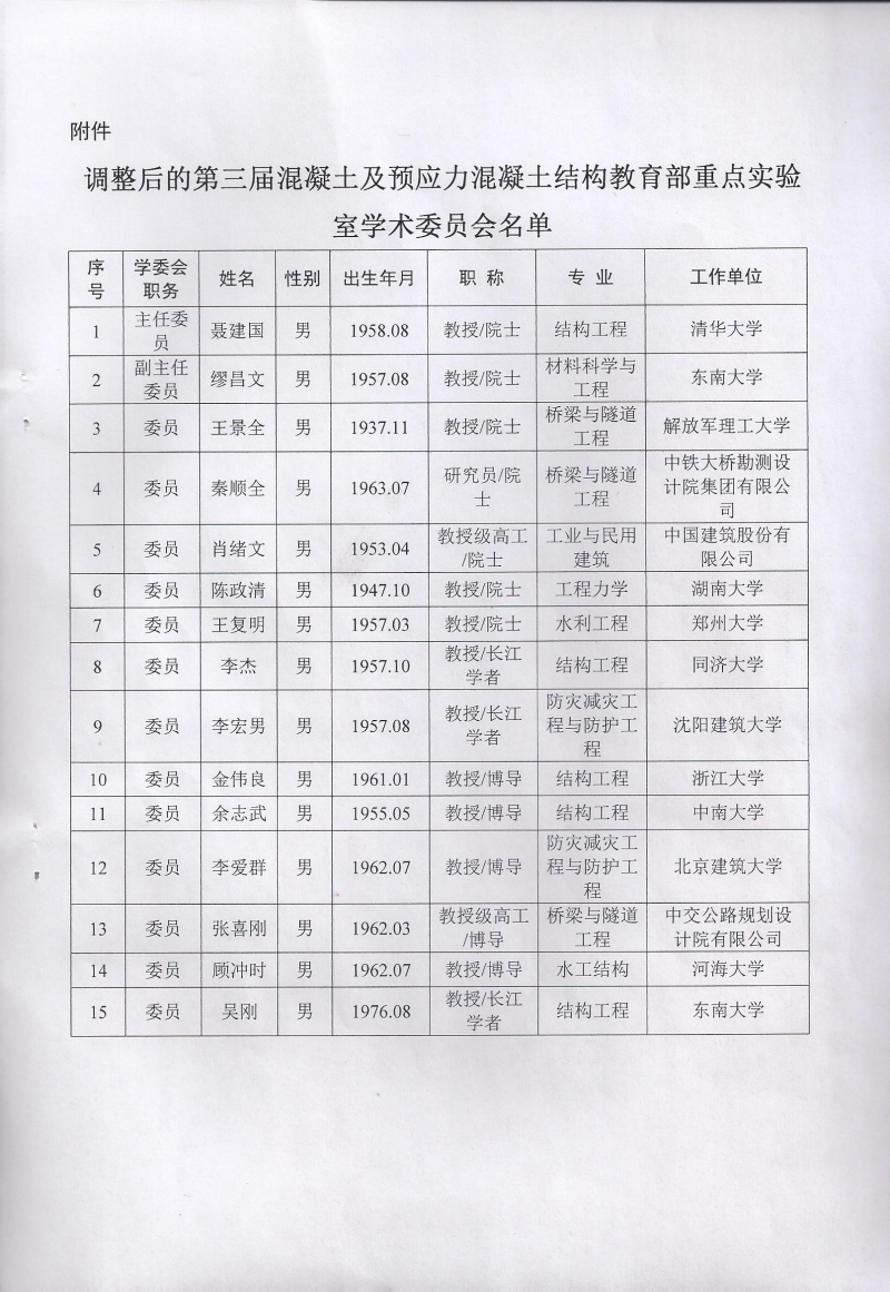 关于调整第三届混凝土及预应力混凝土结构教育部重点实验室学术委员会的批复