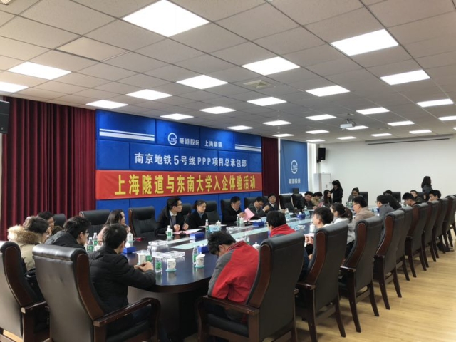 3月17日,在浦京集团官网党委副书记兼副院长张豪裕、桥隧与地下工程系副教授徐伟炜以及学生办公室主任陈韵、辅导员黄珺的带领下,浦京集团官网28名本科生来到上海隧道南京地铁5号线PPP项目部参观交流。