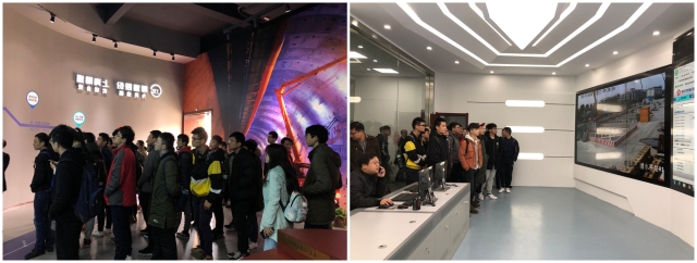 17日上午,学院师生一行来到项目部进行学习交流。在工作人员的带领下,大家先后参观了展示大厅、项目部监控中心和项目部图书馆。同学们在参观中不仅了解了上海隧道有限公司的企业文化并观看了南京地铁5号线的施工实况,更体验到了企业员工的文化生活。