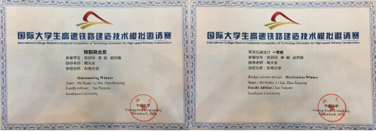 大赛特别突出奖、桥梁抗震设计一等奖证书