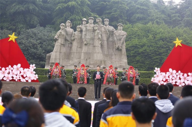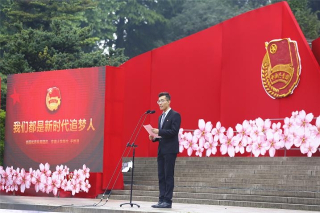 4月29日下午,“青春心向党•建功新时代”江苏省暨南京市纪念五四运动100周年特别主题团日活动在雨花台烈士群雕广场举行。共青团江苏省委书记王伟、共青团南京市委书记吕璟、第三届“南京青年五四奖章”获得者、部分机关企事业单位及学生代表共700余人参加。