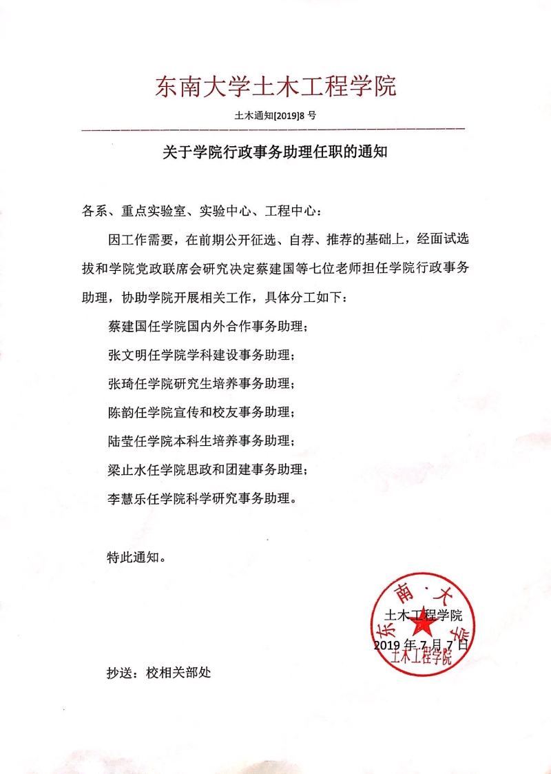 关于学院行政事务助理任职的通知