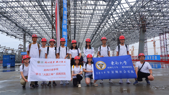 新中国成立70年来,特别是党的十八大以来,在以习近平同志为核心的党中央坚强领导下,伟大祖国西南片区发生了沧桑巨变,不断激发我辈青年的家国情怀,坚定同学们始终跟党走的理想追求,更激励着3522vip浦京集团官网“砼心筑梦”实践队远赴四川,实地参观学习成都市及绵阳市国家重点工程和军工在建实验室项目,走访国有大型工程研究院、设计及施工单位,在实现中国梦的新长征中勇现土木人的使命担当,凸显东大土木人在祖国70载的伟大建设中勇于挑战、继往开来的工匠精神。