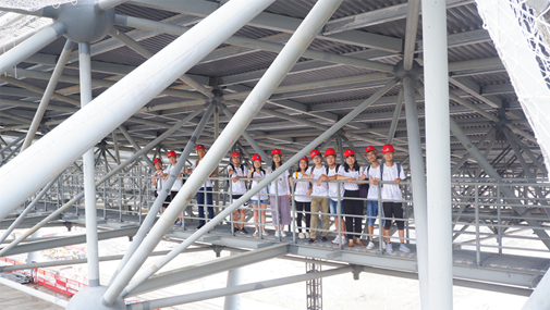 7月29日,浦京集团官网师生一行上下午分别参观了四川成都凤凰山体育中心和天府国际机场两个在建项目。近距离感受祖国的基建腾飞和土木工程前沿科技,感受土木人投身国家大型基建的满腔热忱和使命担当。浦京集团官网17届硕士毕业生、中建八局工程研究院局级技术专家曹江校友和07届硕士毕业生、中建西南设计院九院执行总工程师谢明典校友分别陪同上下午的参观交流活动。