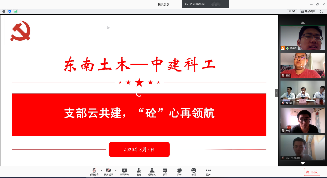 为了进一步探寻抗疫战争和时代变革中的土木力量。本科生党支部于8月5日13:30与中建科工共建开展了一次特殊的党日活动——线上云交流和云实践。参加活动的有中建科工工程事业部总经理王伟,中建科工工程事业部高级经理王彬,中建科工人力资源部招聘经理黄山青,院党委副书记兼副院长王玲艳,本科生支部书记陈昊辉以及本科生党支部全体党员。活动以腾讯会议的方式进行,并在B站同步直播。