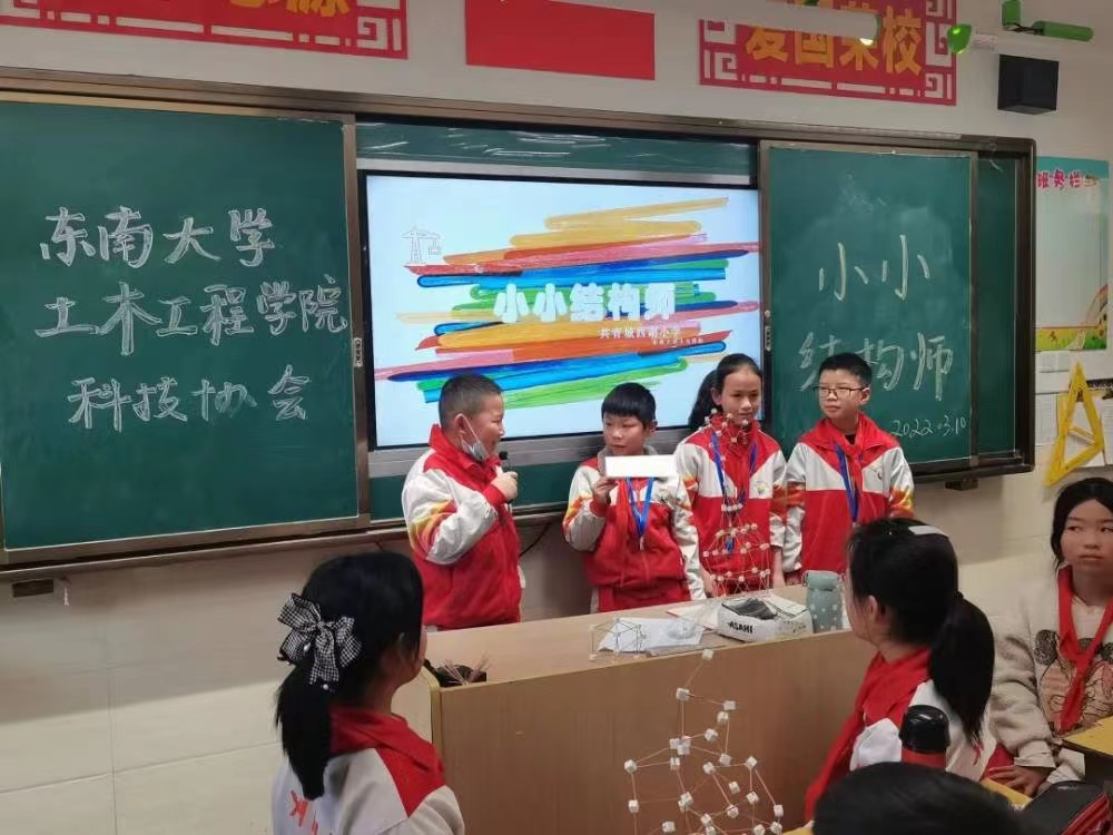 ?匠心建构 筑梦未来—“小小结构师”科普公益劳动实践项目以结构创新为引领,建立“实践项目+研学课程+结构竞赛”三维联动的实践机制,组织学生自主的“土木学生科协”以“走出去、请进来”的方式将专业教育与生产劳动、社会志愿服务深度融合,专业化的社会实践推进了劳动教育,学生在劳动中也增长了见识、磨练了意志、锻炼了能力,通过沉浸式劳动,体验了专业的社会角色,也通过劳动成果获得了专业认同感和社会责任感。