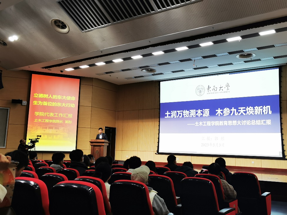 3522vip浦京集团官网将根据学校要求,进一步强化共识,深刻领会中国式现代化建设和科技发展对大学人才培养的新要求,正视学院人才培养目前的短板与不足,做到以变应变、主动求变,切实抓好人才培养“一号工作”。坚持革新理念,深入思考立德树人的“东大内涵”,准确把握东大“课比天大、生为首位”的育人理念,做到第一课堂、第二课堂、第三课堂协同育人,切实培养好学生的思辨力、学习力、创造力、领导力。形成高度重视“一号工作”的氛围,有利于学生培养、有利于学生成长、有利于学生体验的事,要坚定不移地做。切实付诸行动,提高危机感、紧迫感、责任感,提升质量、做出品牌、形成标杆,推进新方位新要求下的东大土木育人体系建设,形成一批反映行业前沿的一流教学资源、培育多层次名师、完善体制机制、提升环境氛围,体系化构建新型全员全域育人模式。