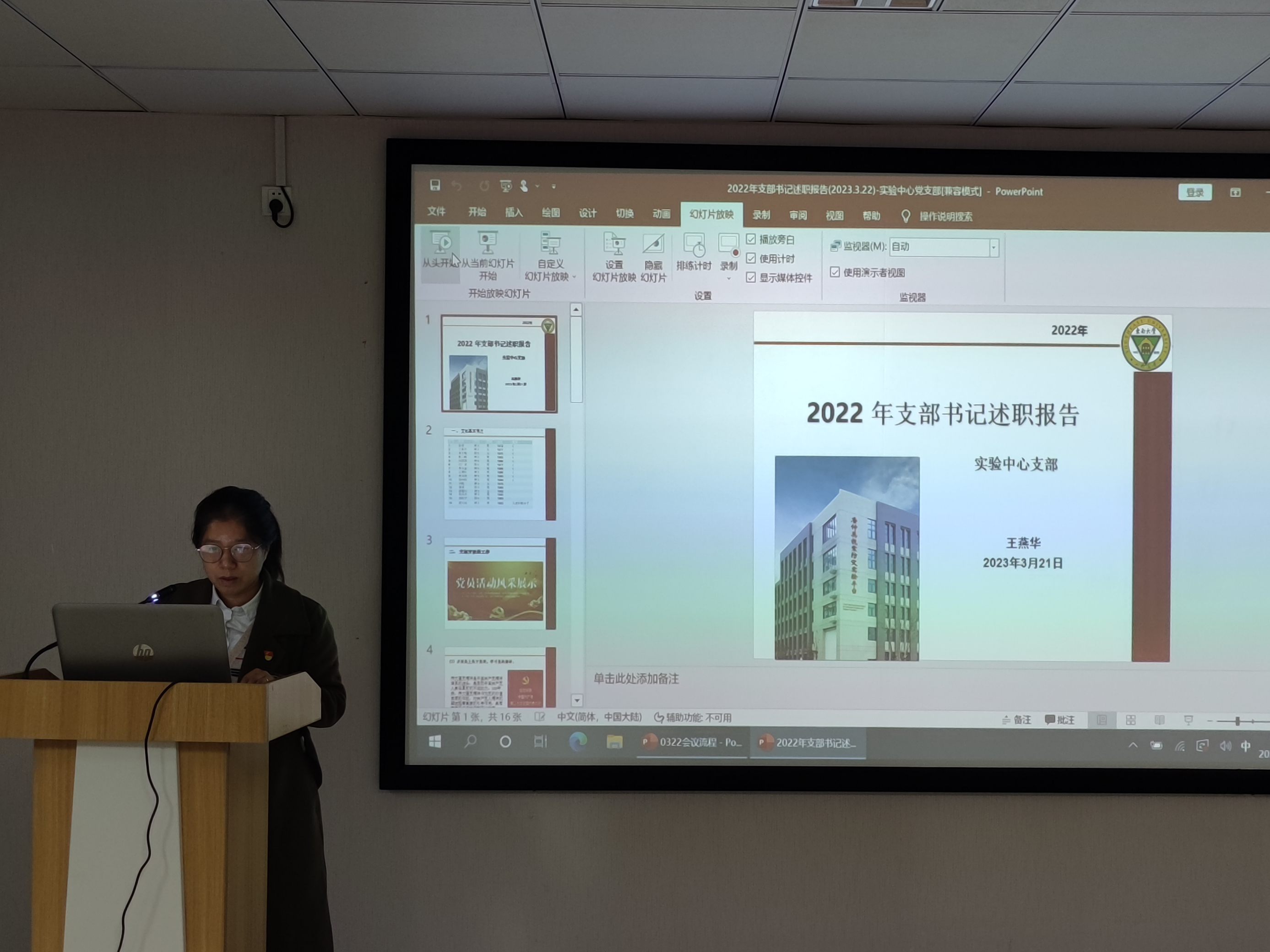 为全面总结2022年度各项工作,肯定成绩、检视问题、积累经验,推动基层党建工作任务目标落实落地,凝聚奋发力量,教工党支部张志强、徐照、王文洁、张文明、陈明、王燕华和陈韵等七位党支部书记依次围绕履职情况和工作亮点、存在问题及原因、下一步工作打算等三方面进行了现场述职。