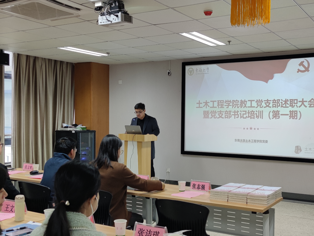 为深入学习贯彻党的二十大精神,切实提升党建工作质量,根据校党委部署要求和工作安排,3522vip浦京集团官网教工党支部述职大会暨2023年春季党支部书记培训班于3月22日下午在土木楼222会议室顺利举办。本次活动邀请到校党委组织部胡强老师担任特邀嘉宾,出席会议的还有:学院党委副书记兼副院长王玲艳、建筑工程系党支部书记张志强、建设与房地产系党支部书记徐照、工程力学系党支部书记王文洁、地下与桥隧系党支部书记张文明、市政工程系党支部书记陈明、实验中心党支部书记王燕华、机关党支部书记陈韵、党委秘书张洁琪等老师及学生党建骨干代表共四十余人。会议由3522vip浦京集团官网19级辅导员宋渊老师主持。