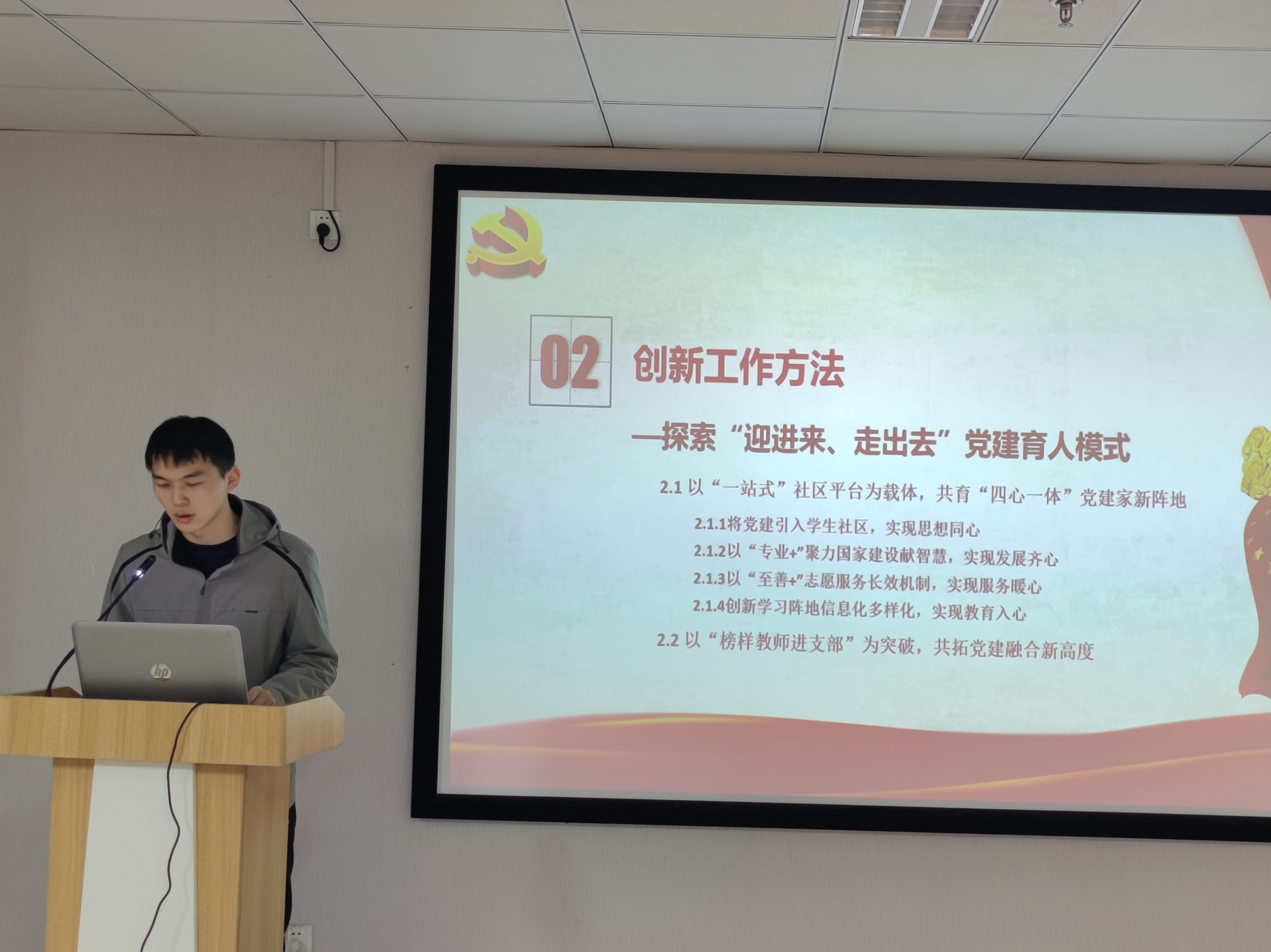 建设与房地产系党支部书记徐照老师、研究生结构第二党支部代表耿天瑞同学分别代表教工党支部、学生党支部进行了优秀党支部书记经验分享。