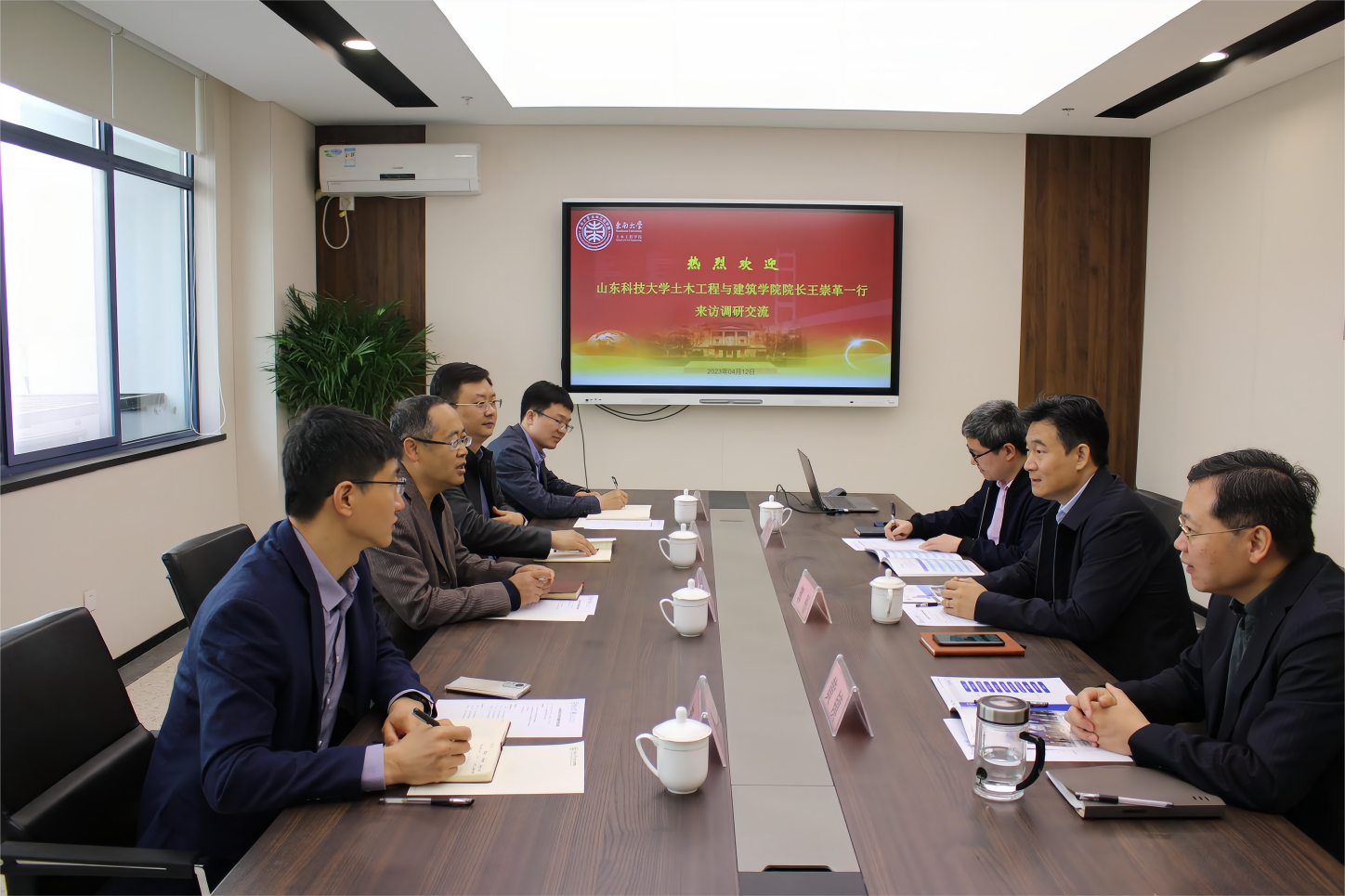 4月12日上午,山东科技大学土木工程与建筑学院院长王崇革,副院长李朋、都浩、李为腾一行来浦京集团官网访问交流。浦京集团官网院长郭彤、副院长黄镇、院长助理张文明参加了调研交流会。