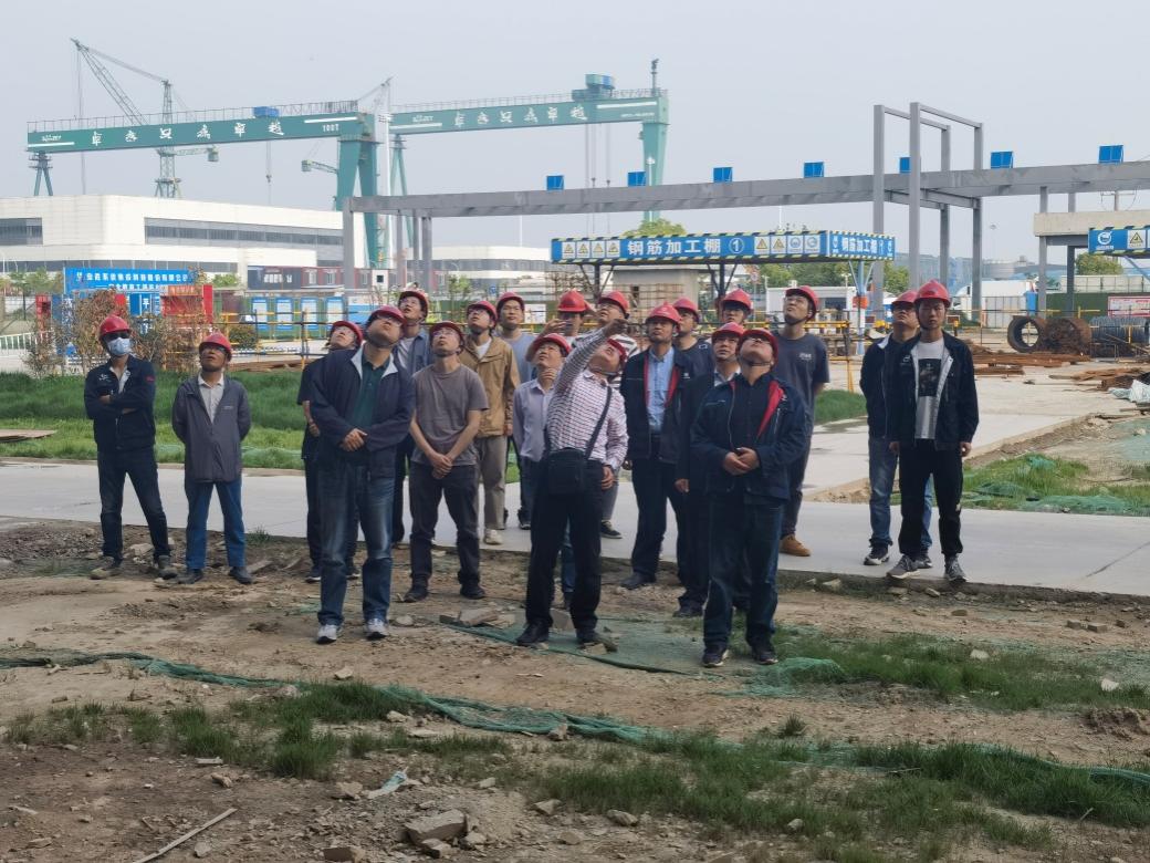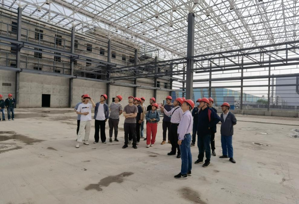 2023年4月19日下午,浦京集团官网建筑工程系舒赣平教授和实验中心杜二峰高级工程师带领钢结构方向的硕士、博士研究生赴靖江凯飞民用航空结构件生产制造项目工地开展课堂教学。参加教研活动的还有河海大学土木与交通学院伍凯副教授,宝胜系统集成有限公司董事长吴建平、行政总监朱长宏、副总经理顾强和副总工程师张萌等。