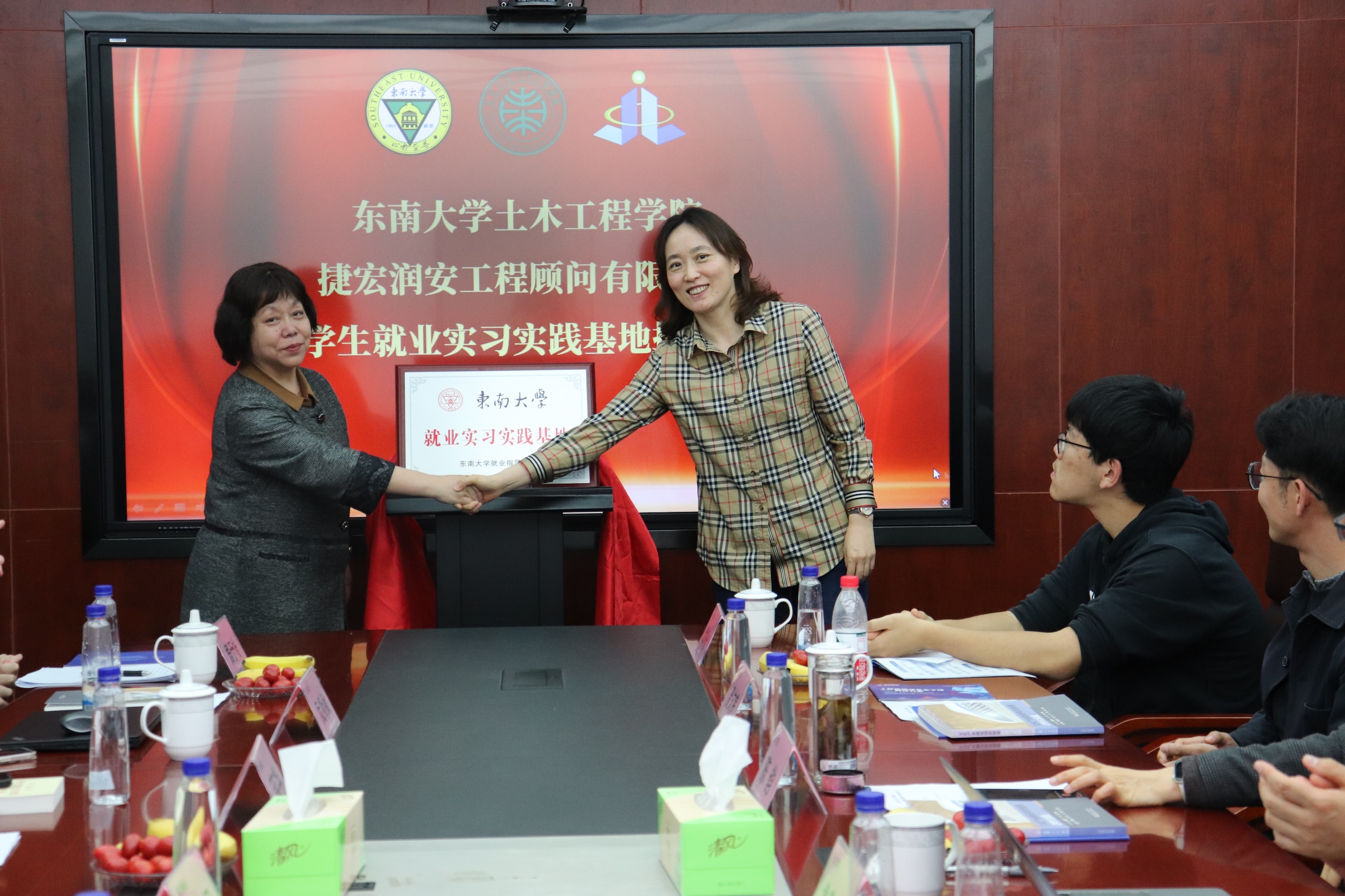 最后,刘静书记与吴虹鸥董事共同为捷宏润安就业实习实践基地揭牌,在未来双方会在多方面加强合作,构建学生第一课堂与第二课堂的高效互动桥梁,共同为培养新时代土木工程领军人才而努力。