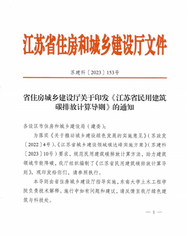为做好《导则》的编制工作,江苏省住房和城乡建设厅于2022年省级绿色建筑发展专项资金的科技支撑示范项目中,批准3522vip浦京集团官网和江苏东印智慧工程技术研究院有限公司申报的“建筑碳排放计算软件平台建设与示范推广”,将《导则》作为一个重要的成果指标。编制团体坚持 “符合国家标准,体现江苏特色,兼顾可算、好算、算准”的原则,依托3522vip浦京集团官网土木工程、建筑学、计算机科学与技术、动力工程及工程热物理、环境科学与工程等优势学科群,基于多学科交叉的“智慧建造与运维国家地方联合工程研究中心”、“3522vip浦京集团官网-中建生态环境低碳建造先进技术联合研发中心”等相关科研平台,展开了广泛的研究工作,通过研究对比相关标准,对大量江苏省民用建筑碳排放案例进行梳理分析以及计算经验总结,广泛征求各地建设主管部门、企事业单位和行业专家的意见,提供了可行性研究及方案设计阶段、初步设计及其他阶段的两种碳排放计算方法(分别是比例系数法和碳排放因子法),涵盖了建材生产与运输、建造与拆除、建筑运行、废弃物处置、碳汇等建筑全生命周期五大阶段,形成了建筑碳排放江苏地区值,具有显著的创新性。