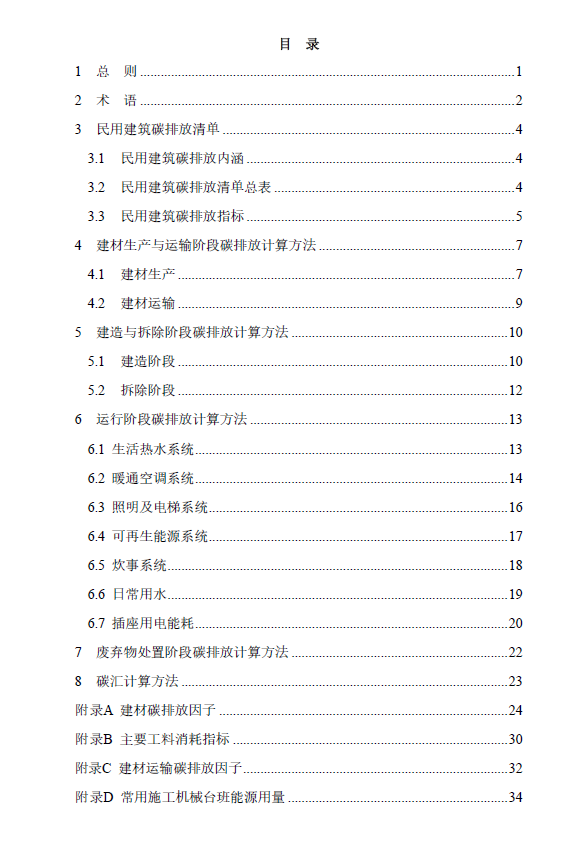 《导则》在《建筑碳排放计算标准》GB/T 51366-2019计算运行、建造及拆除、建材生产及运输三个阶段碳排放的基础上,增加废弃物处置阶段、碳汇的计算方法,并在运行阶段碳排放计算时新增炊事系统、日常用水、电器能耗等碳排放。主要内容分为八章,包括总则、术语、民用建筑碳排放清单、建材生产与运输阶段碳排放计算方法、建造与拆除阶段碳排放计算方法、运行阶段碳排放计算方法、废弃物处置阶段碳排放计算方法、碳汇计算方法,涵盖民用建筑运行阶段生活热水、暖通空调、照明及电梯、可再生能源、炊事、日常用水、插座用电等七大系统。