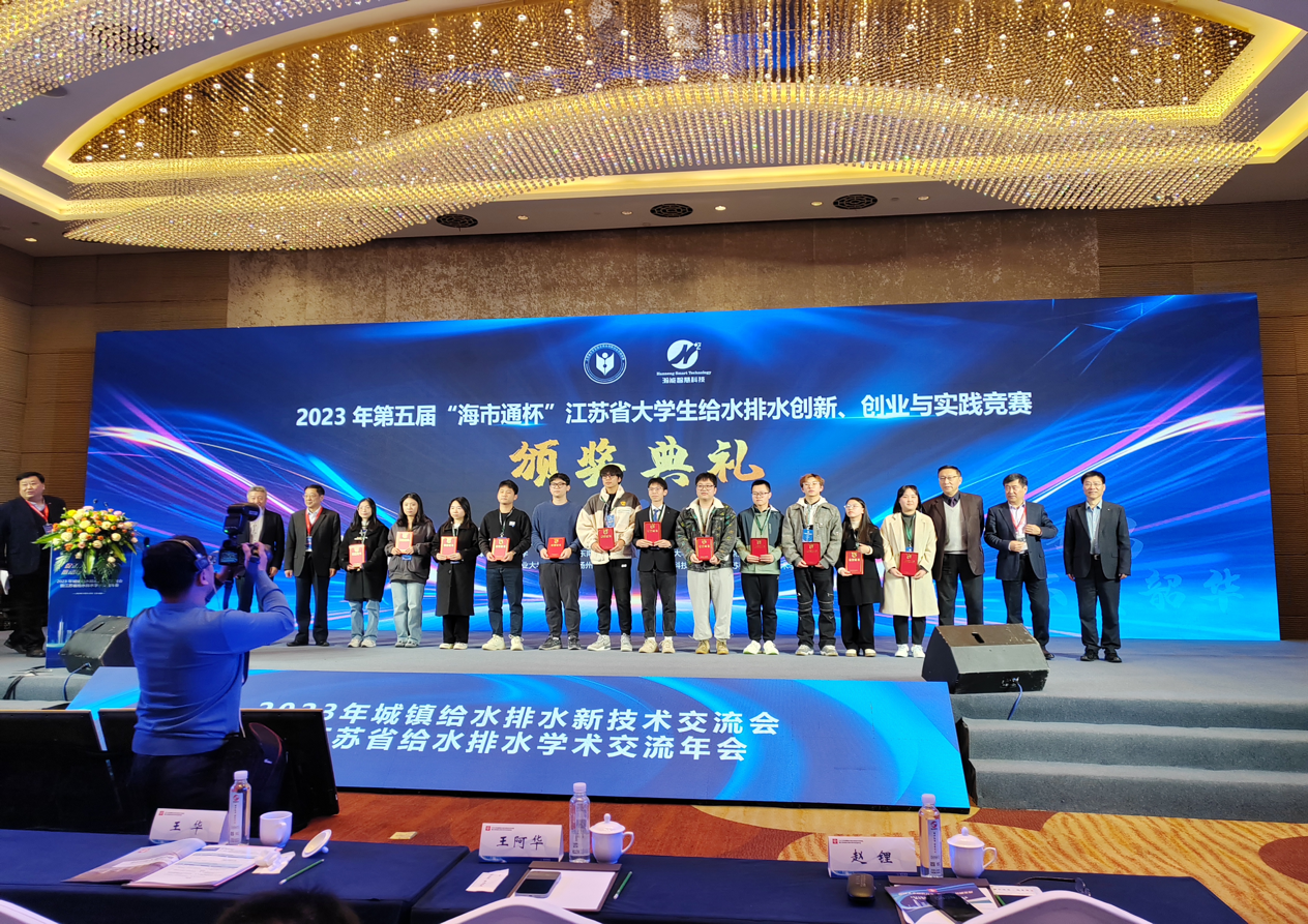 2023年11月24日,第五届“海市通杯”江苏省大学生给水排水创新、创业与实践竞赛颁奖典礼在江苏南通正式举行(图1)。浦京集团官网市政系谈超群、李贺、杨小丽和朱仟等教师指导的学生团队凭借着卓越的创意和扎实的学术基础,在本届比赛中获一等奖2项,二等奖1项,三等奖4项(表1)。