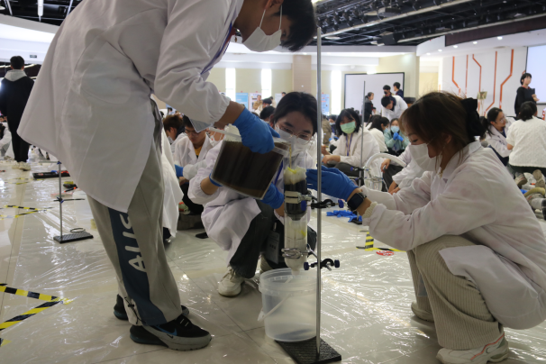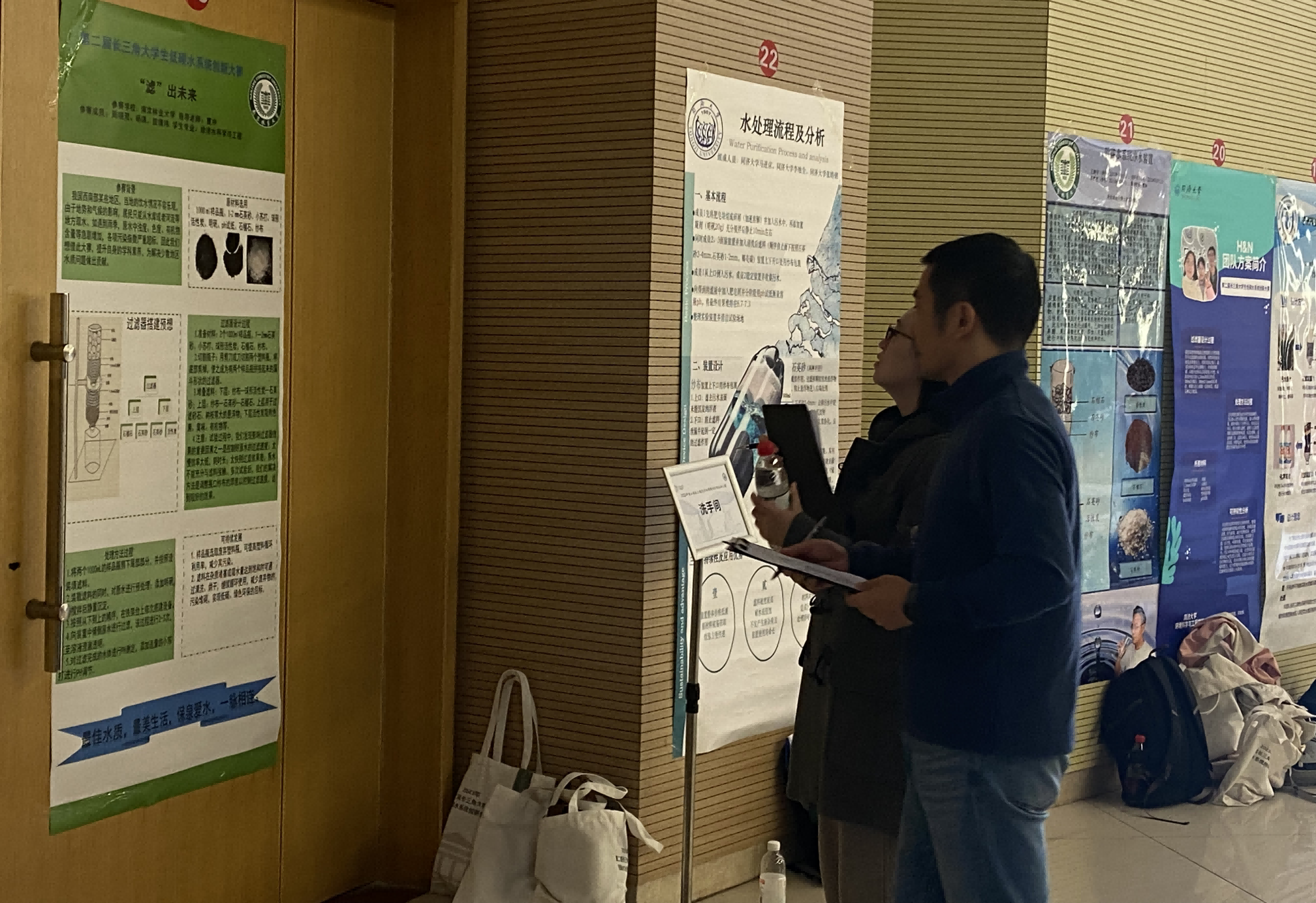 大赛开幕式于比赛当日下午13:00准时开始,由我系给排水科学与工程专业大三年级本科生于盼担任大赛开幕式主持人,负责向到场嘉宾及参赛同学介绍比赛规程。开幕式后半段,由我系谈超群副主任主持揭牌仪式,与同济大学黎雷老师、浙江大学张可佳老师分别代表本大赛的三所联合发起高校,宣告长三角大学生低碳水系统创新大赛联盟正式揭牌成立。揭牌仪式结束后,大赛正式开始,各参赛队队员返回各自比赛场地,紧锣密鼓地开展水处理装置的搭建与净水工作,到场的各位专家同步进行了海报的评审打分工作。