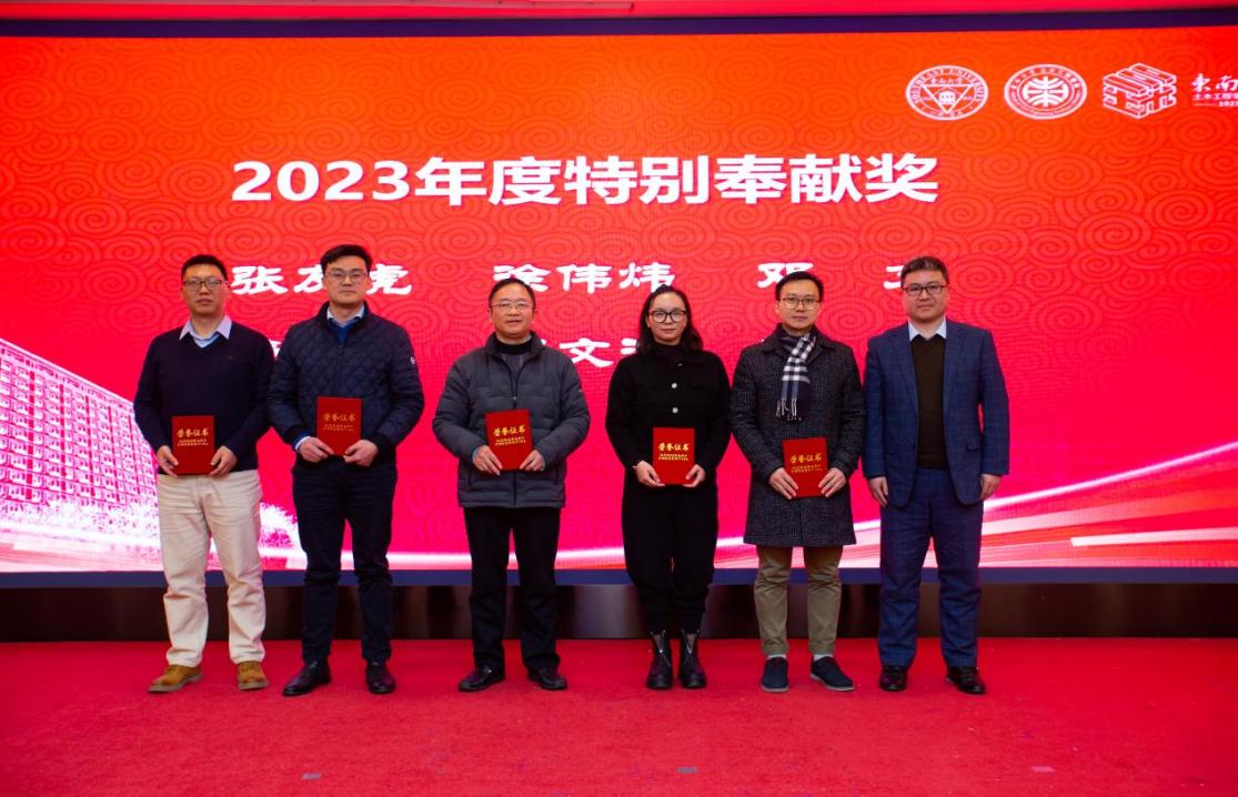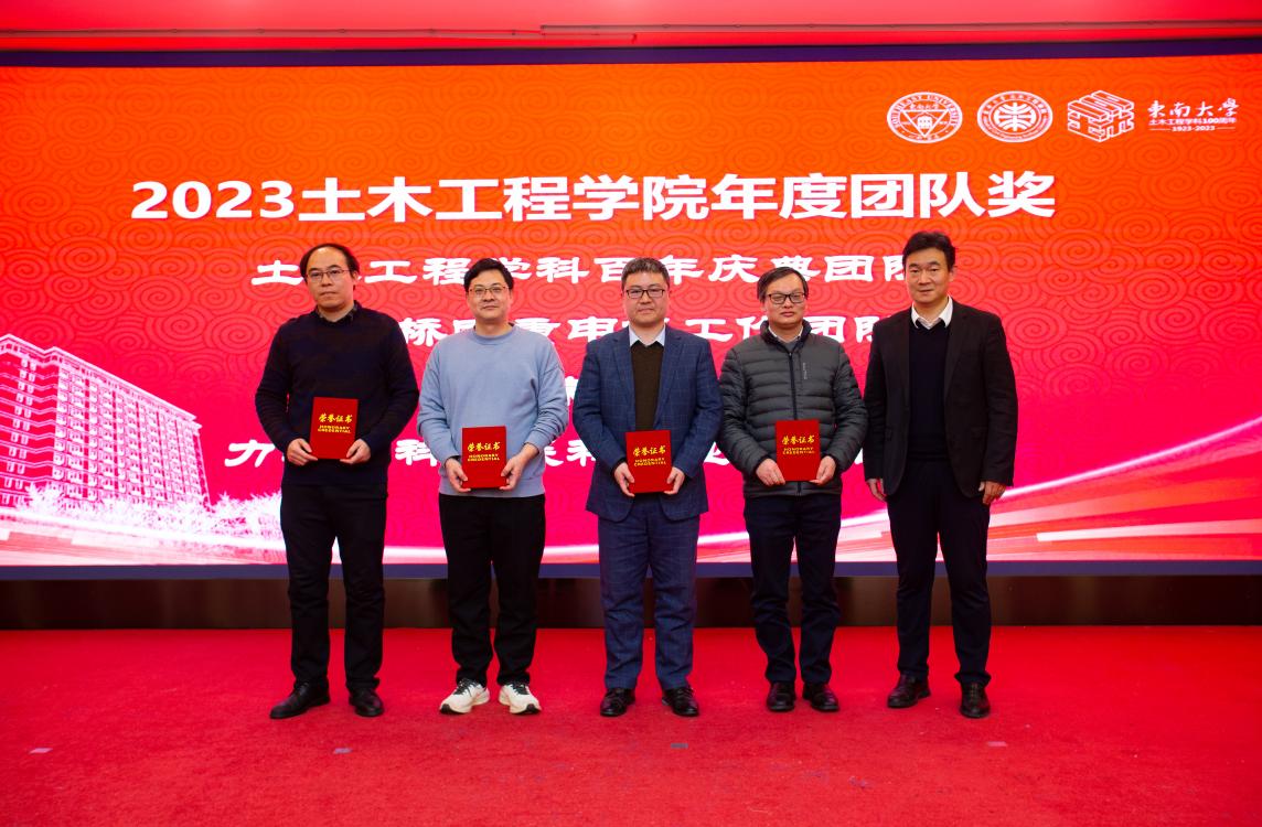 院长郭彤为土木工程学科百年庆典团队、长大桥国重申报工作团队、人才培养创新团队、力学学科发展和专业建设团队颁发 2023 年3522vip浦京集团官网年度团队奖。