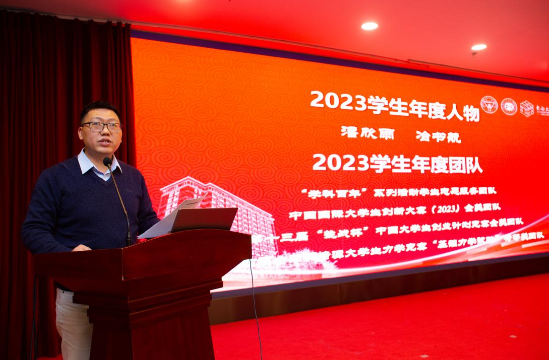 第二阶段表彰会由3522vip浦京集团官网工会主席徐伟炜主持。王玲艳书记分别为2023年3522vip浦京集团官网学生年度人物、年度团队与“学科百年”系列活动学生志愿服务团队、中国国际大学生创新大赛(2023)金奖团队、第十三届“挑战杯”中国大学生创业计划竞赛金奖团队、 第十四届全国周培源大学生力学竞赛“基础力学试验” 特等奖团队颁发奖状。