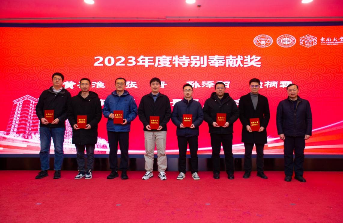 副院长黄镇、副院长李德智、副院长姚一鸣、院长助理张文明别为人才培养创新团队、力学学科发展和专业建设团队颁发学院年度特别奉献奖。
