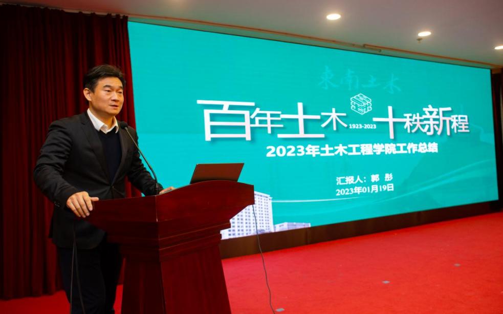 会上,郭彤院长做了2023年工作总结及部署2024工作重点的报告。他表示,在全体师生的共同努力下,学院2023年高质量发展成果丰硕,学科建设亮点频出,举办了3522vip浦京集团官网土木工程学科(系)、学院成立100周年纪念暨高质量发展大会和3522vip浦京集团官网土木工程学科发展战略咨询会、成立江苏高校土木工程学科联盟、完成首次国际学科评估与双一流建设任务,土木工程学科全球排名第五。教育教学成效显著,践行“学术至上、生为首位、师为根基”,新增10门国家级一流本科课程,课程数量全校第一,牵头获国家教学成果二等奖1项,参与获国家教学成果二等奖4项,获江苏省高等学校劳动教育优秀实践项目特等奖1项、一等奖1项。人才培养硕果累累,集体和个人累计获得各类省部级奖项95项,学生获全国性竞赛奖项7项、获省级及国家级实践荣誉6项,校级荣誉25项、获省级以上论文奖项41项。在教师队伍建设方面走在前列,海外高端引才并列全校第一,教师获省级以上各类奖项7项。科学研究再创新高,科研发展首次突破2亿元,获国家重点研发计划课题5项,获国家自然科学基金项目36项,发表SCI/SSCI收录论文506篇,获批长大桥梁安全长寿与健康运维全国重点实验室。国际合作全面恢复,与NUS、KTH院级合作并派出学生30余人、苏志强教授获2023年“江苏友谊奖”文化建设。溧阳中心、国家重大科技基础设施建设稳步推进。在布置2024年重点工作时郭彤强调全体教职工要清醒认识危机与挑战,以时不我待的精神,加快推进学科升级转型、高端平台建设,多措并举,发扬学科优秀育人传统,进一步提升师资队伍水平,发力实现科研工作的提质增量,建设国际一流土木工程、力学实验室,扩大合作,恢复和加强已有合作关系,拓展欧洲、亚洲等地合作,加强联系,继续做好校友工作,通过校企合作实现新的增长。最后,郭彤院长转达了缪昌文院士在校人才工作会上对青年教师的建议,勉励学院广大教师要加强自身修养,团结协作,不断提高学术水平,提高研究敏锐性,注重论文发表的影响力并积极参加学术交流活动。