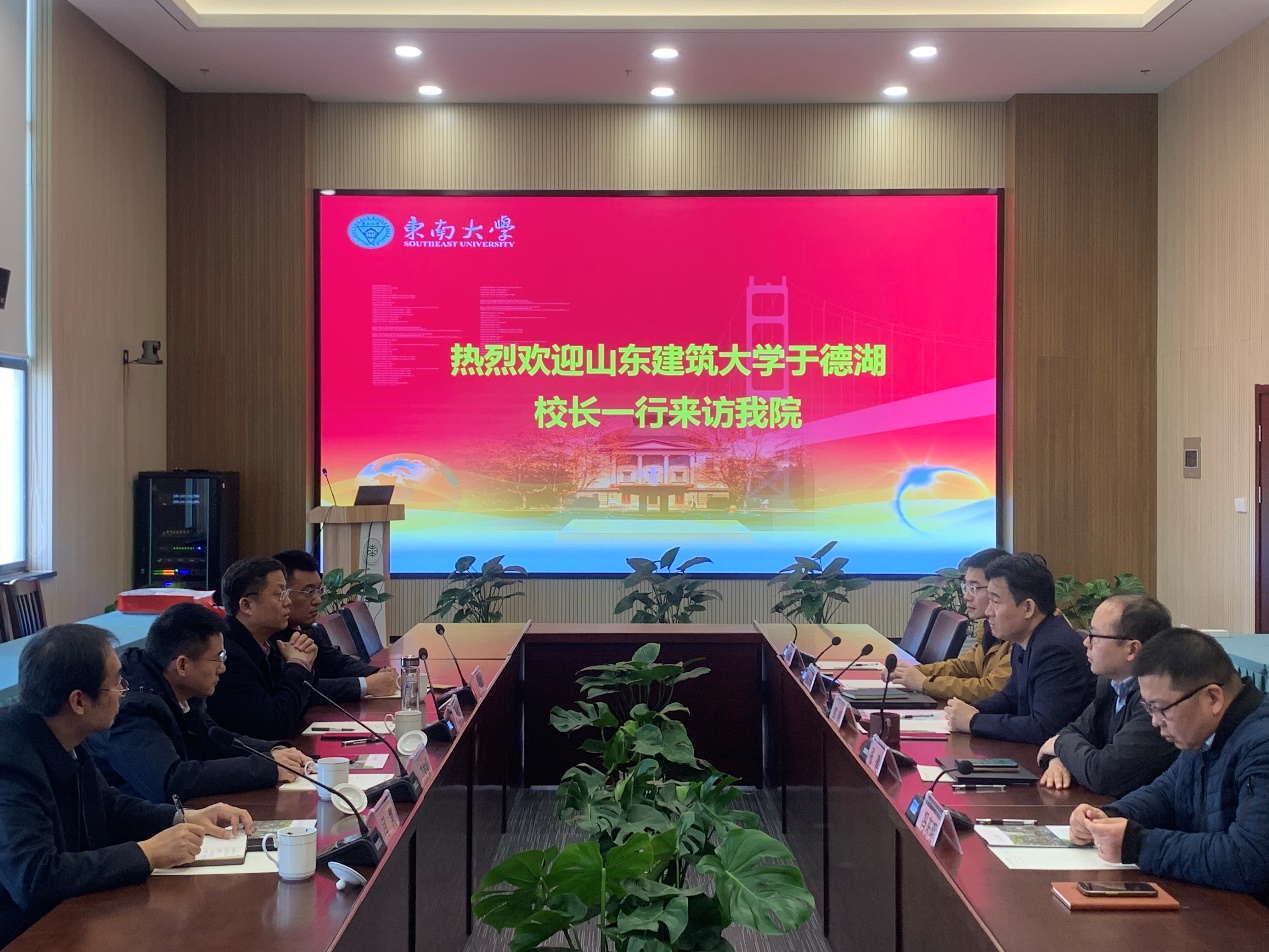 在双方各自介绍了与会交流人员后,针对山东建筑大学调研内容需求与兴趣,管东芝副教授代表东大土木智能建造教研室向山东建筑大学各位老师介绍了东大土木从智能建造本科专业建立、到智慧建造与运维研究生二级学科获批、再到智能建造教研室成立的发展历程,分享了东大土木智能建造教研室的教学、科研工作成果与建设经验。双方就土木工程及智能建造专业的建设与发展进行了深入交流。于德湖校长、李秀领处长对东大土木智能建造教研室的工作成绩表达了由衷的赞许与肯定。