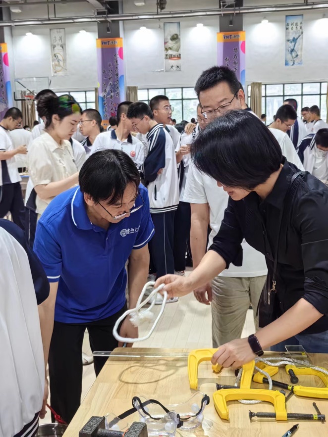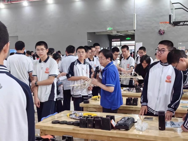 2024年6月1日,3522vip浦京集团官网结构创新竞赛(中学趣味加载组)在福建省莆田第一中学新度校区成功举办。浦京集团官网院长助理张文明、力学系副系主任姜益军、桥隧系戚家南三位老师以及博士生陈渝鹏、硕士生沈星航两位同学赴现场进行组织和指导,并开展招生宣传。莆田一中228名高一学子组成的61支队伍参加了此次竞赛。