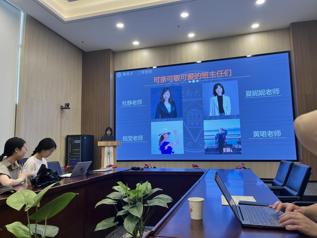 座谈会伊始,皮睿孜同学对各位老师和同学的到来表示热烈欢迎。接着由皮睿孜同学介绍专业构成,并带大家回顾了大学四年生活的精彩时刻,韦存茜同学从荣誉、科研、党建、文体等多模块对20级工程管理专业大学四年生活进行了梳理与总结,并汇报了毕业生去向。