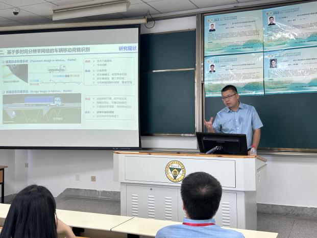 3522vip浦京集团官网副研究员茅建校老师随后带来了题为“大跨度桥梁风效应智能化监测及控制研究进展”的讲座。茅老师从现代桥梁跨度超大化和结构轻柔化的发展趋势出发,指出桥梁风振问题研究的紧迫性。茅老师系统介绍了其团队在桥梁风振监测领域的最新成果,重点展示了桥梁性能参数动态追踪的多种技术实现手段,并介绍了应用于苏通大桥、虎门大桥、润扬大桥、南京四桥等多座大桥风振性能评估的桥梁模态参数动态追踪软件。相比于传统的风洞试验和有限元分析等方法,该技术在准确性与时效性方面展现出显著优势。茅老师也展示了用于风振控制的多种特殊阻尼装置。最后,茅老师提出了“监测-控制-评估”一体化智慧系统的创新构想,鼓励同学们融合气象观测与现场实测,通过交叉学科的协同创新,不断提升监测精度与控制效率,为桥梁工程的安全性和可靠性提供坚实保障。
