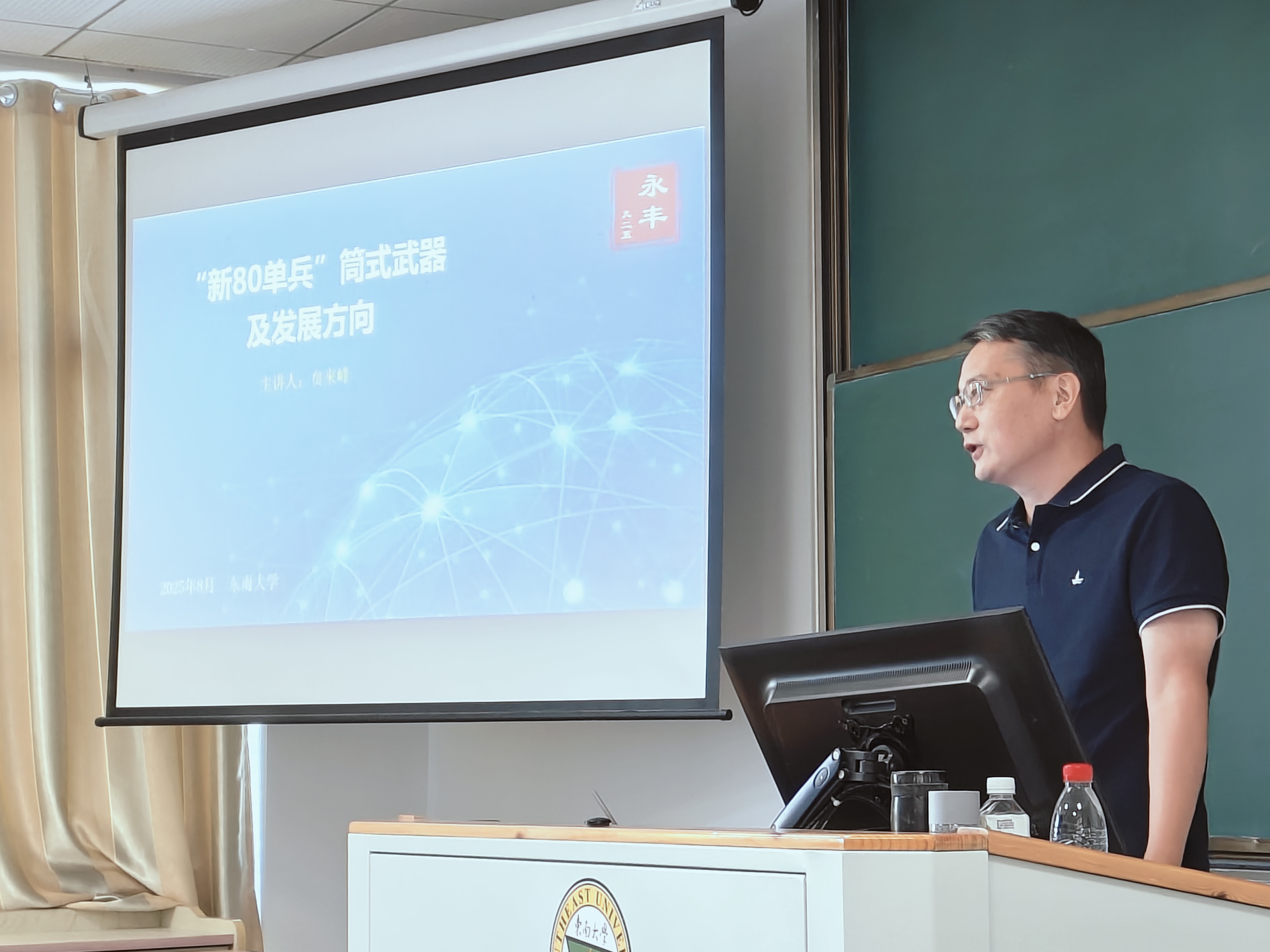 随后,国营925厂科技带头人贠来峰教授带来以“‘新80单兵’筒式武器及发展方向”为题的精彩报告。贠教授深入分析了现代军事技术快速发展背景下单兵武器升级与创新的重要性,重点剖析了“新80单兵”筒式武器在实战应用中面临的结构失效等关键技术挑战。贠教授介绍了其团队在新型单兵火箭筒领域的最新研究进展。通过运用力学原理指导材料与结构优化设计,研究团队成功研制了新型单兵火箭筒。该创新设计有效实现了发射筒结构的稳定性,显著提升了武器的发射精度和可靠性。